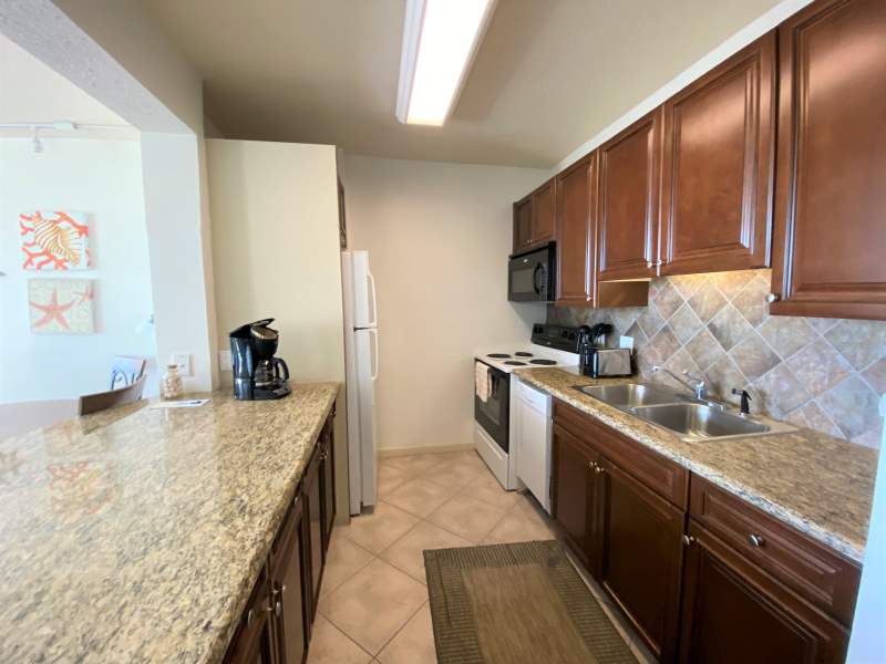 This one bedroom has a king in the master, and a sleeper sofa in the living room with an attached sitting balcony off the living room.